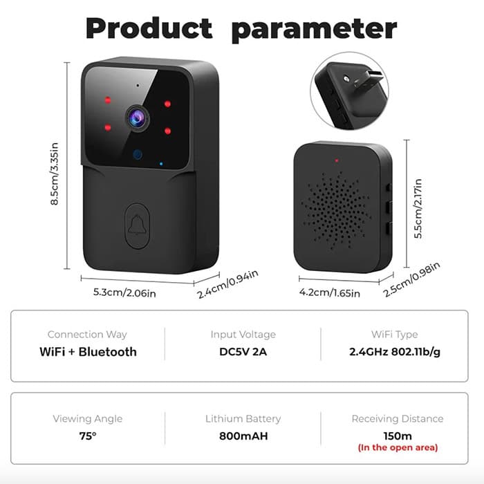 Zvonček nabíjajte pomocou priloženého USB kábla. Zvonček upevnite pomocou priložených skrutiek. Aktivujte Bluetooth a WiFi pripojenie pre spojenie. Na smartfóne kliknite na možnosť vyhľadávania zariadenia. Potom stlačte zvonček, aby zazvonil. Váš telefón detekuje zvonenie. Pridajte ho ako nové zariadenie a zariadenie je pripojené po niekoľkých sekundách. Keď niekto zazvoní, dostanete na smartfóne notifikáciu. Objaví sa živý obraz osoby stojacej pri dverách. Ak chcete niečo povedať, stlačte tlačidlo "Držať pre hovor" a držte ho počas hovoru. Aby ste sa uistili, že osoba pri dverách počuje zvuk, musíte tiež nainštalovať malú časť vonku - zvukový prijímač. Zvukový prijímač musí byť zapojený do elektriny (typ USB). |