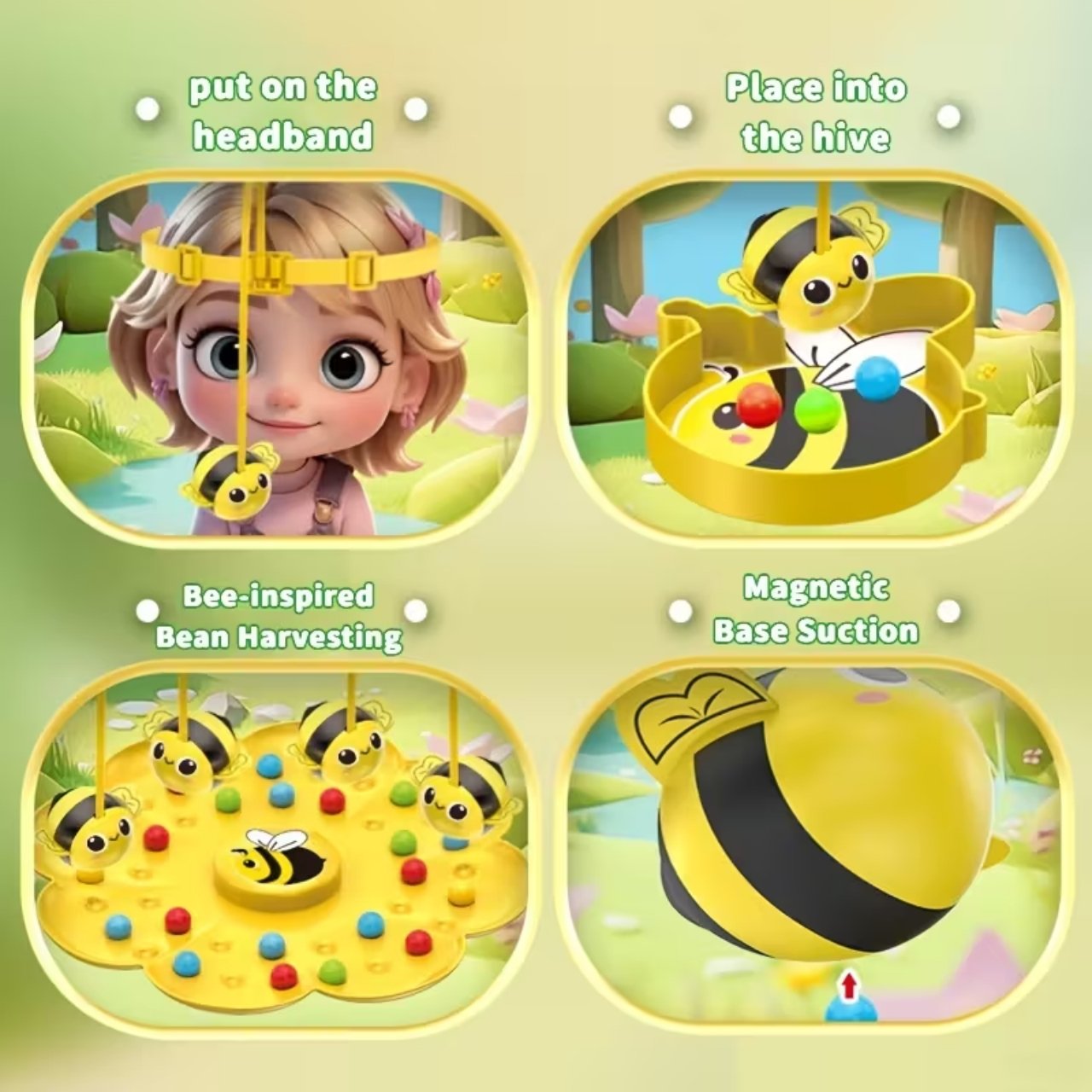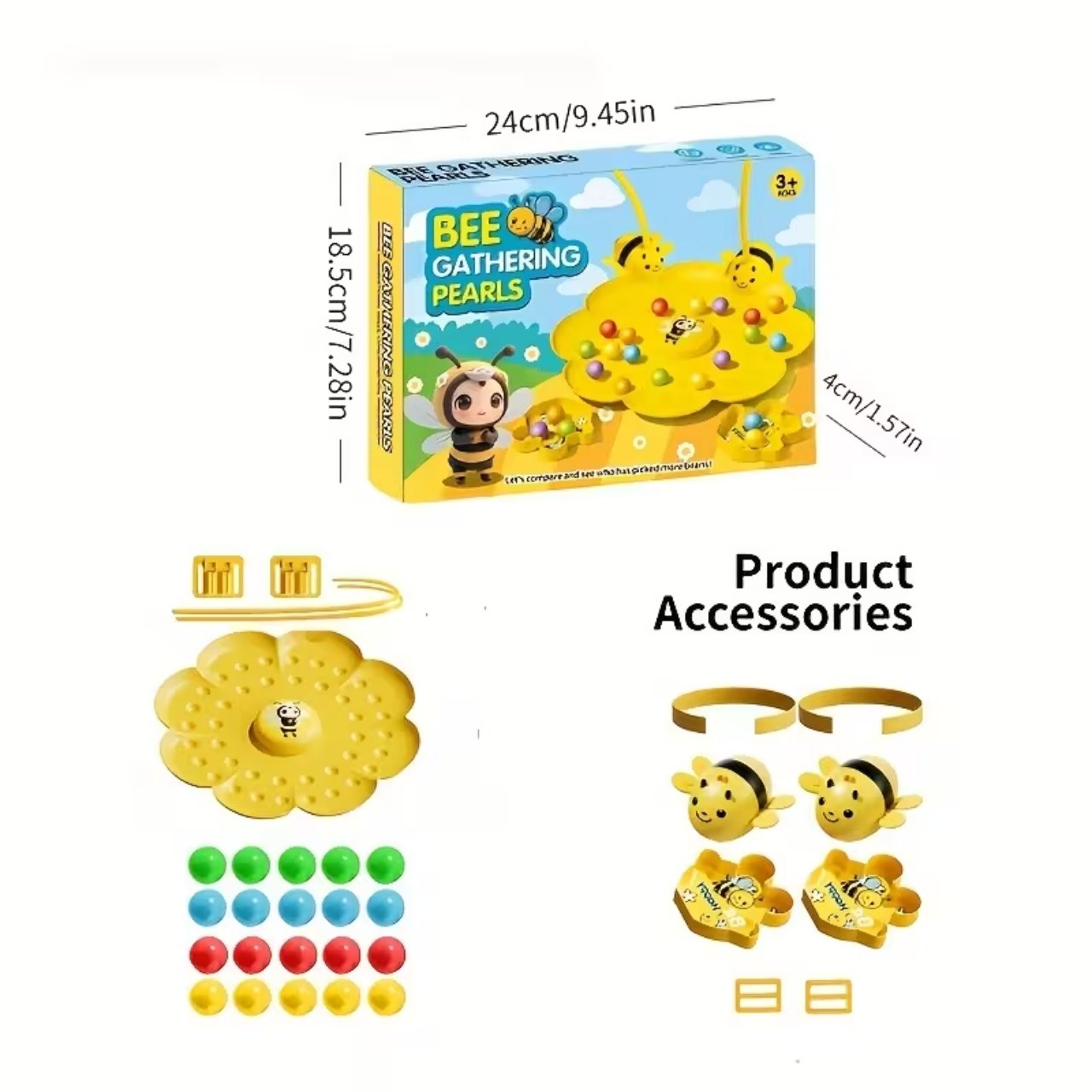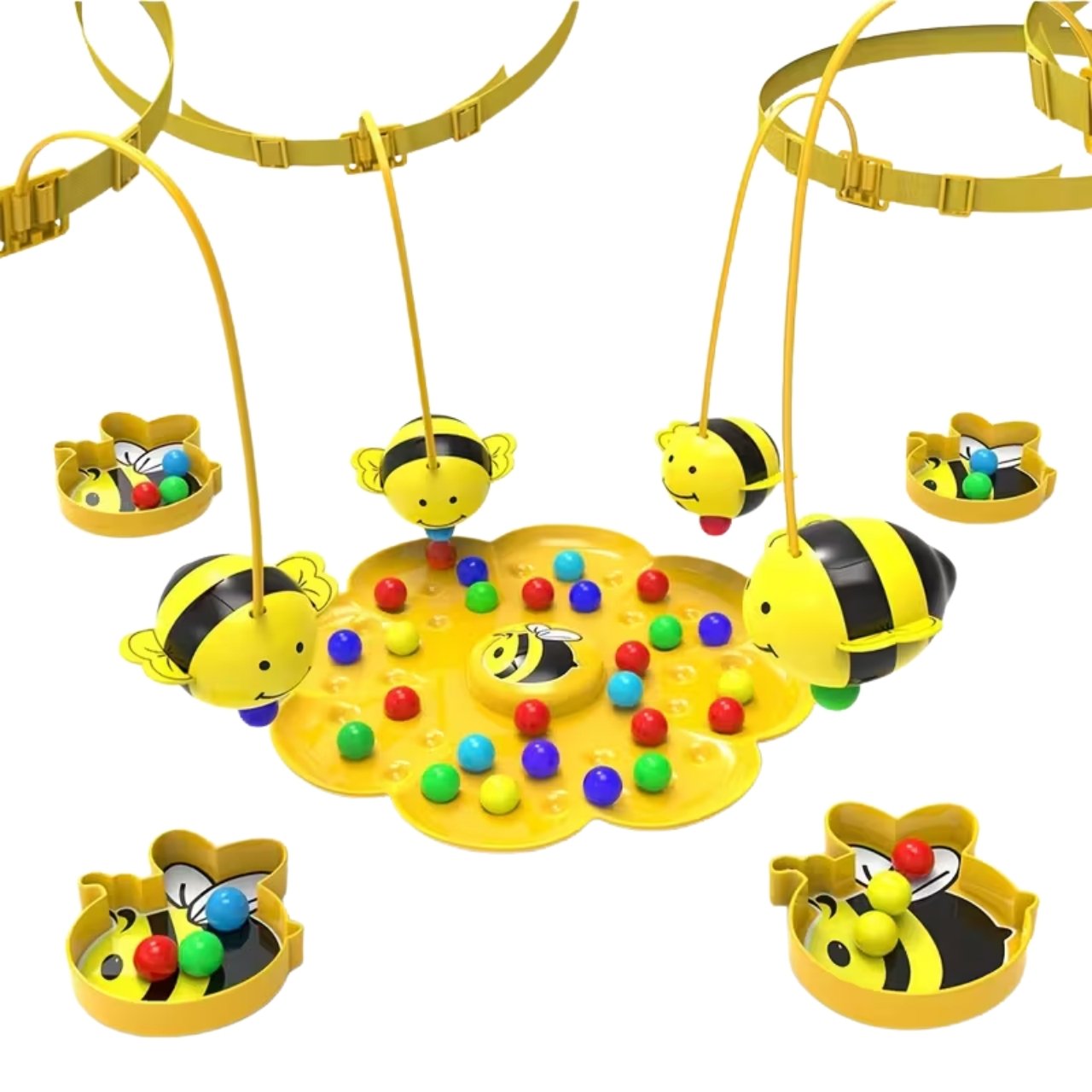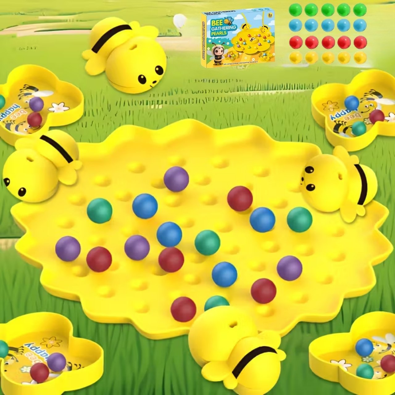 | V balení: | 1x herná doska, 4x pohár na loptičky, 4x čelenka s magnetickými včelami, farebné loptičky |
