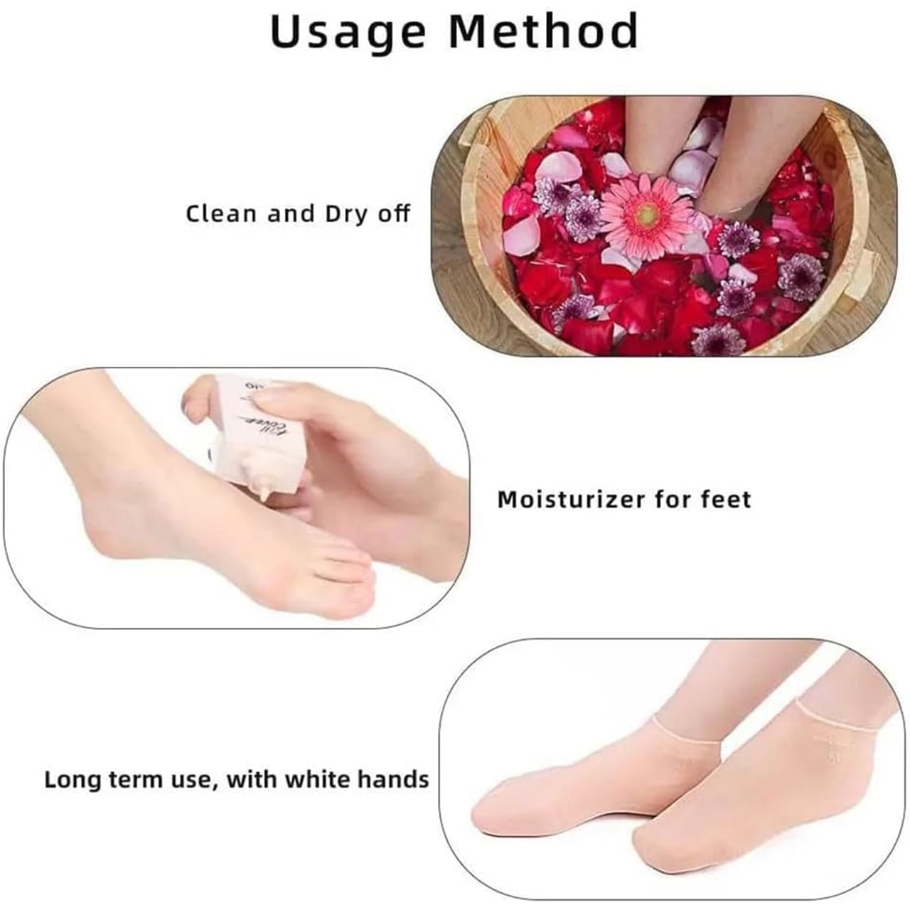 Naneste krém a lotion na ponožkami obalené nohy a oblečte si ich. Noste ponožky, kým pokožka nevstrebe všetok krém. Môžu sa nosiť aj pod topánkami alebo v noci. Ponožky môžete umývať mydlom pod tečúcou vodou.